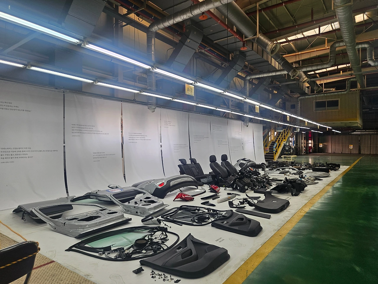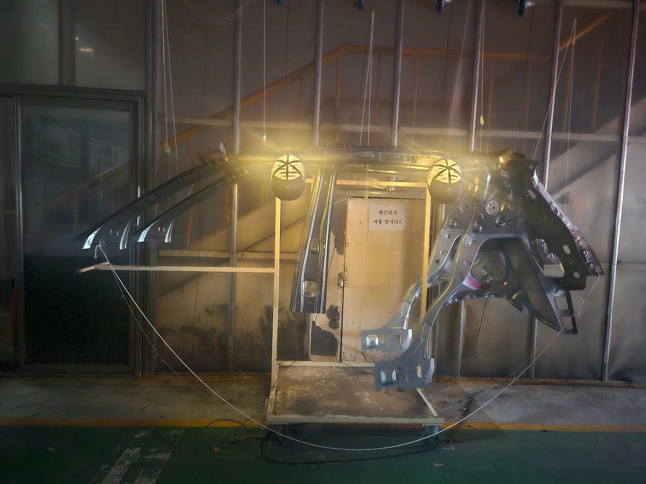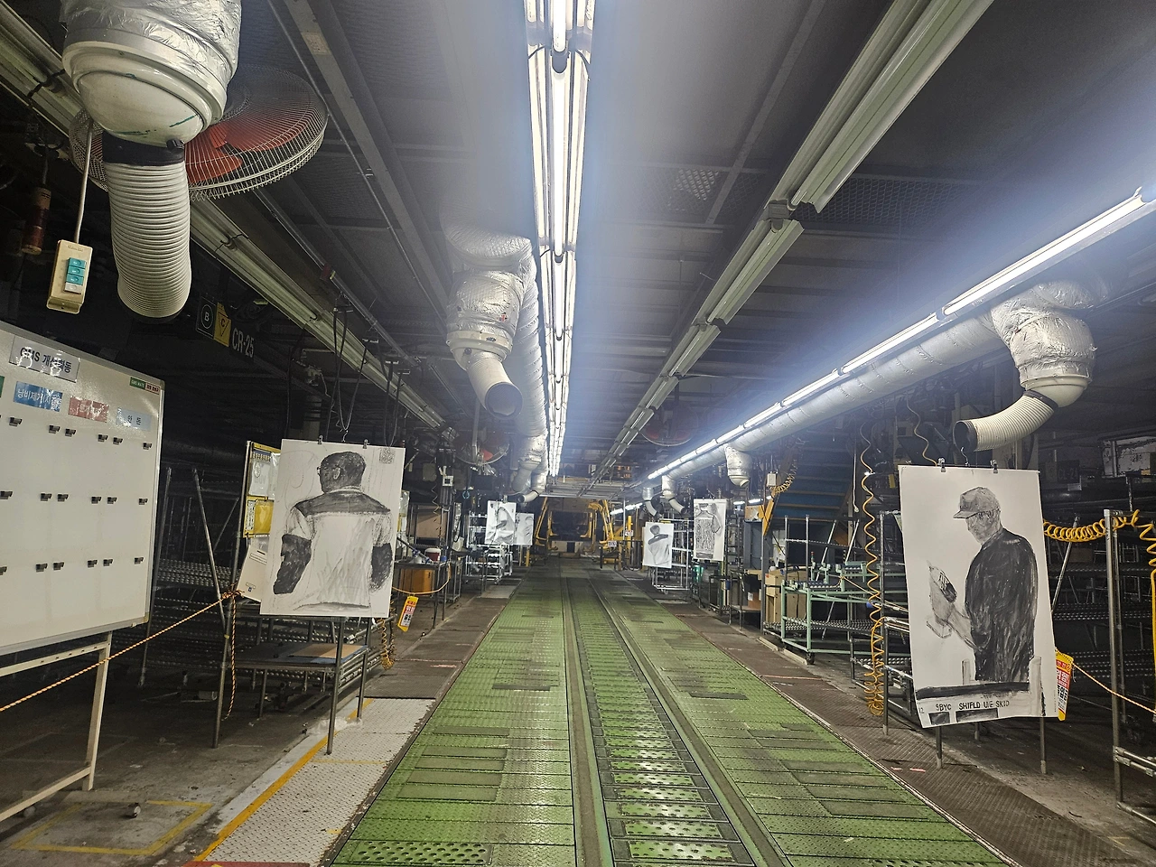 차체공장(body shop)은 프레스공장에서 나온 패널들을 용접해 차량 전체 골격을 만드는 곳이다. 이곳도 지금 가동이 중단되어 전시공간으로 탈바꿈했는데, 양정욱 작가의 작품도 있었다.
