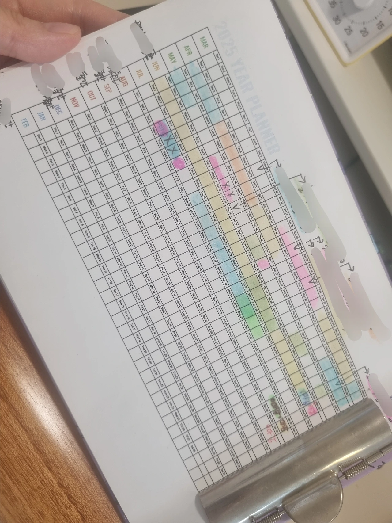 이 사진은 제 스케쥴표 입니다. 지금이 7월이라 7월 중순까지 색칠이 되어있네요.