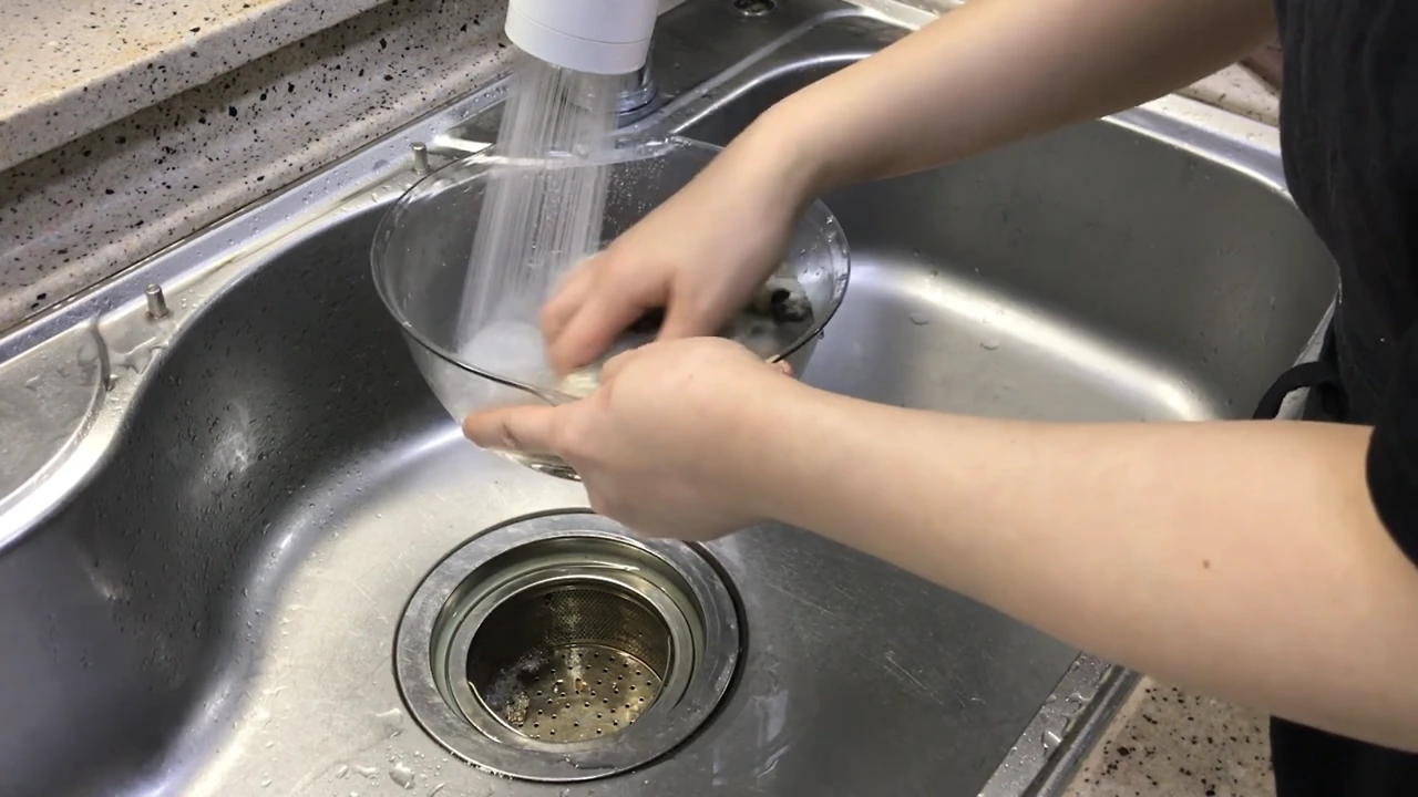 굴을 찬물에 살랑살랑 세네 번 씻어요.