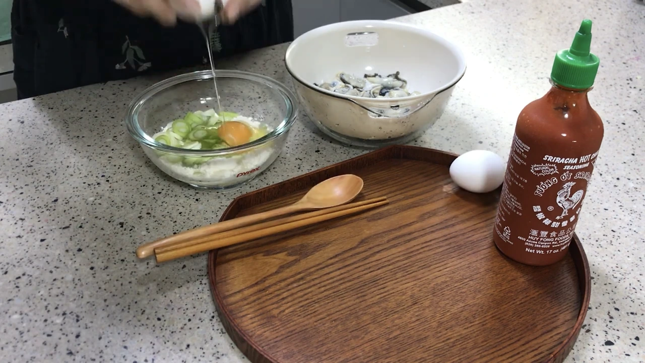굴 250g, 물, 부침가루, 계란, 대파,