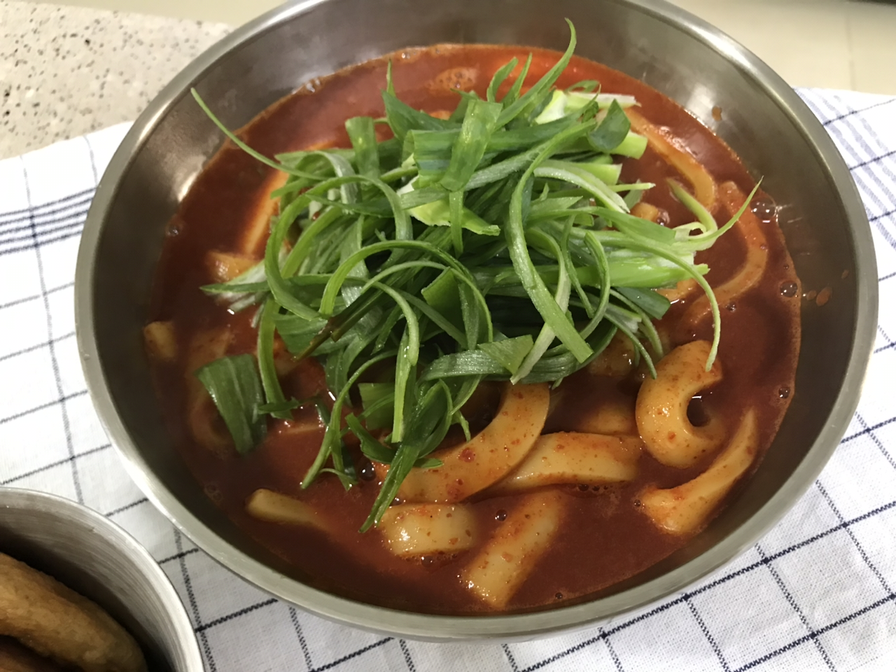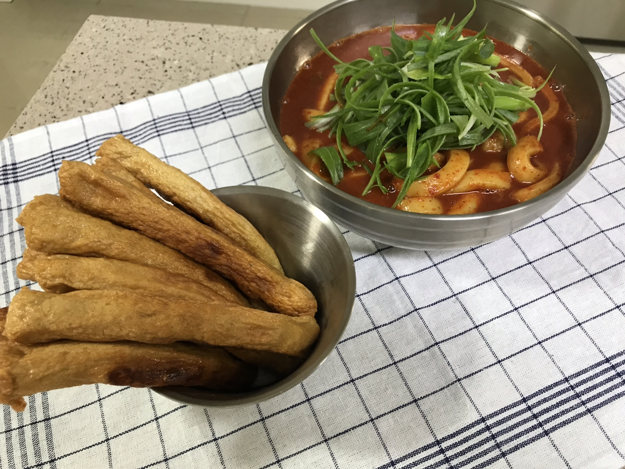 점심은 우리 모두 좋아하는 떡볶이예요.