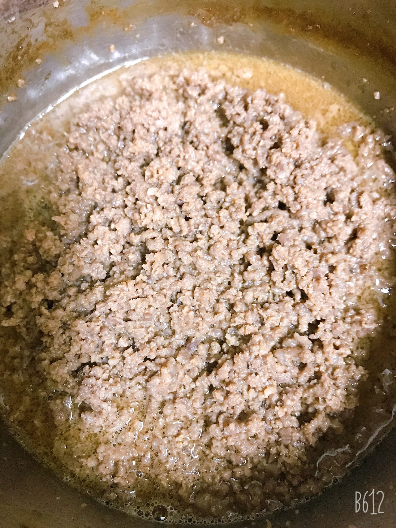 2. 쇠고기 갈아놓은 거 1팩(5인 가족 기준 만원 어치) 사서 집간장 10스푼 참기름 10스푼과 물 10 스푼 넣고 볶아 끓이기. 익으면 맛을 봐서 앗!! 왤케 짜!!!! 할 정도로 간을 세게 해 놓기. 소금 추가 가능. 사진처럼 물이 잘박하게 남겨 놓기.