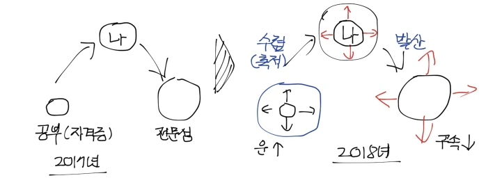여기서 중요한 것은 '수렴/축적 -> 나 강화 -> 발산' 순환 프로세스를 만드는 일입니다. 단순히 무엇늘 하고 안하는 문제보다 본질적인 문제지요.