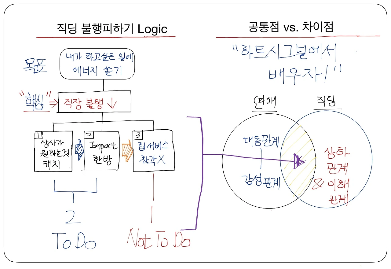 나는 <하트시그널> 팬입니다. '하시' 출연자들은 그 기간동안 사랑을 찾으려고 진심을 다해 노력합니다. 그 모습을 보며, 저렇게 회사 생활을 하면 어떨까 생각해 봤습니다.