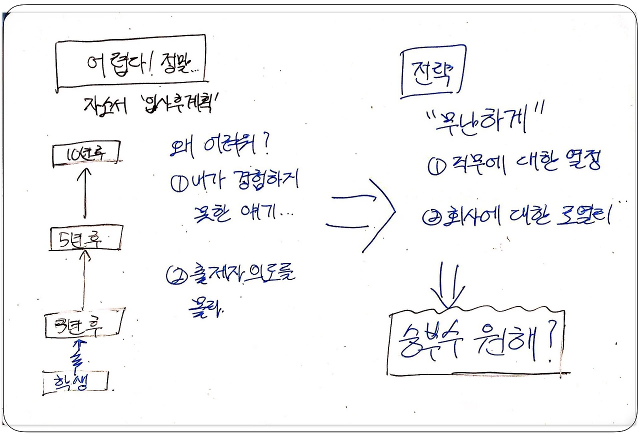소셜멘토링 '잇다'에서 질문을 받았습니다. 그것도 2건이나... 자소서의 '입사후 계획' 항목을 어떻게 써야하냐는 멘토링 요청이었습니다. 곰곰히 생각해 봤습니다. 내가 서류전형하면서 읽었던 자소서 중에 인상 깊은 스토리가 있었나? 예전에 나는 어떻게 썼을까?