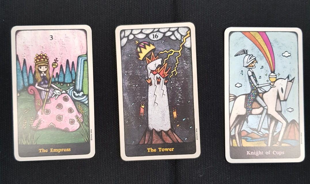 음.. 두번째 '불타는 탑' 카드가 눈에 확 띕니다. 메이저 타로 카드 중에 대표적인 부정적 이미지를 가진 카드니까요. 인간 관계, 특히 연애 관계에서 이 카드가 나오다니...