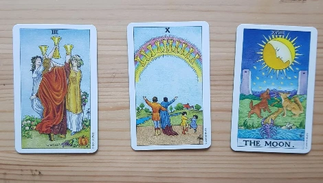 그러나, 뭔가 불안함이 있습니다. 세번째 카드를 보세요. 달이 뜬 밤에 늑대와 개가 짖어대고 있거든요. 핵심은 세번재 카드의 불안을 없애줄 내 행동이 무엇이냐입니다. 그 행동을 말해주는 것이 두번째 카드입니다. 그 한 사람에게 너무 기대하지 말라는 메시지일까요? 언제나 기대가 클수록 실망이 큰 법이니까요.