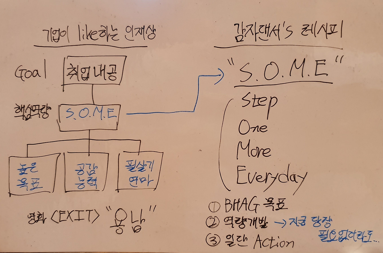 그러나, 재난이 발생한 상태에서의 용남의 행동은 이전의 용남과 다릅니다. 설령 용남의 핵심 역량인 클라이밍이 직딩에게 전혀 필요없는 능력이긴 하지만, 그가 보여준 행동을 우리는 보고 배워야 합니다. 나는 용남의 핵심 역량을 3가지로 정리해 보았습니다.