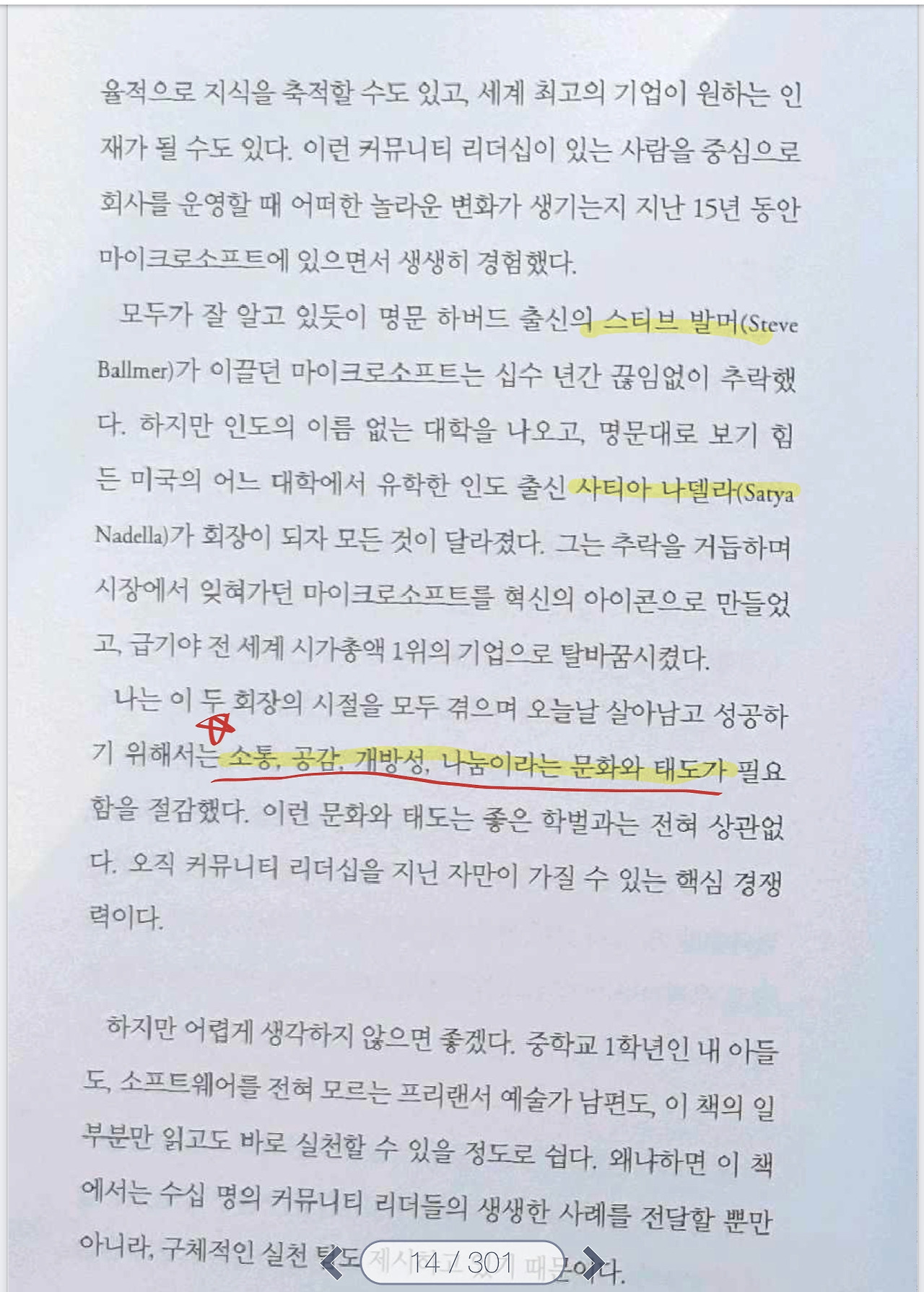 간단해요. 저자가 마이크로소프트(이하 MS) 직원이라 두 CEO를 모두 경험했고, 사티아 나델라가 CEO가 된 이후의 드라마틱한 변화를 직접 경험했기 때문입니다.