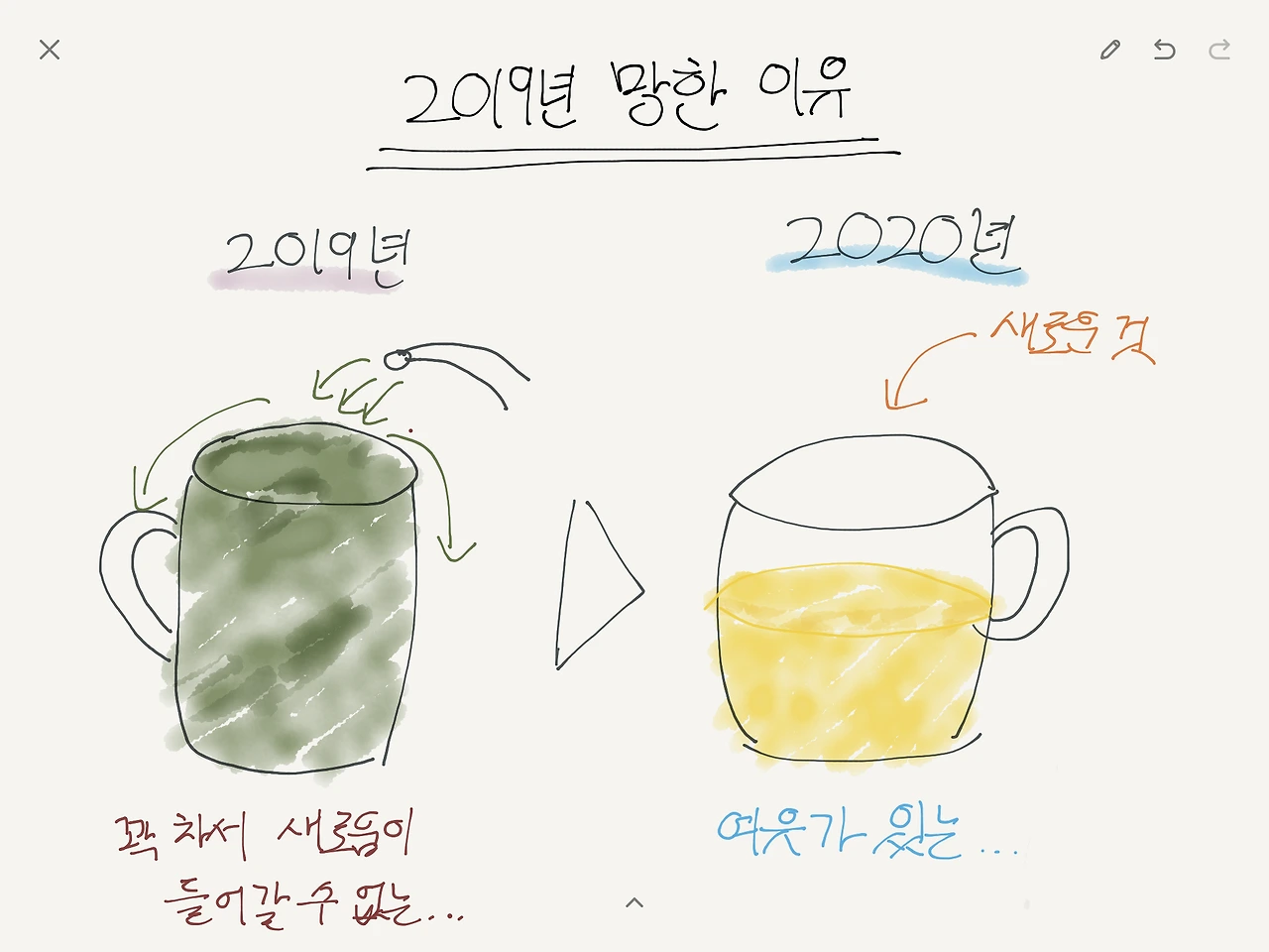 2019년은 완전히 꼬였습니다. 그래서, 2019년을 어떻게든 정리해야 한다는 생각만 하고 있었어요. 그 답답함을 어떻게든 해결하고 싶어서 오늘 반나절 휴가를 내고 멀리 있는 카페에 앉아 생각해 봅니다.