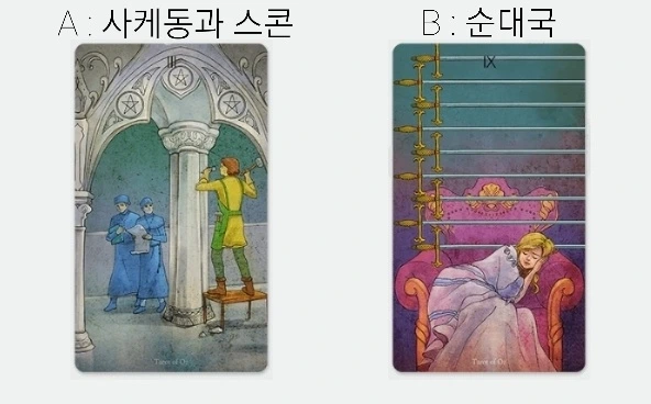 오케이!!! 사케동과 스콘을 먹으러 가는 거야. 팀원들과 순대국 먹으러 갔다면, 내 마음에는 후회만 남을 꺼야. 오른족 타로 카드 (소드 9번)를 봐봐. 카드 속 인물이 고개를 푹 숙이고 좌절하고 있잖아.