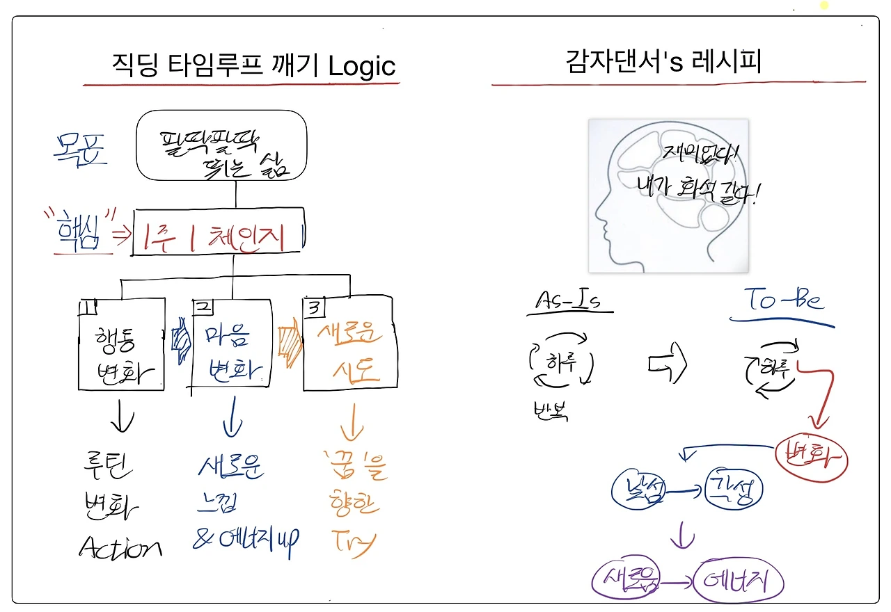일단 이렇게 무한루프를 깨부수는 액션을 한 다음에 내가 원하는 변화 행동을 반복해야 한다. 그렇게 반복해서 루틴화 하면 그때서야 나는 진짜 변하는 셈이다.