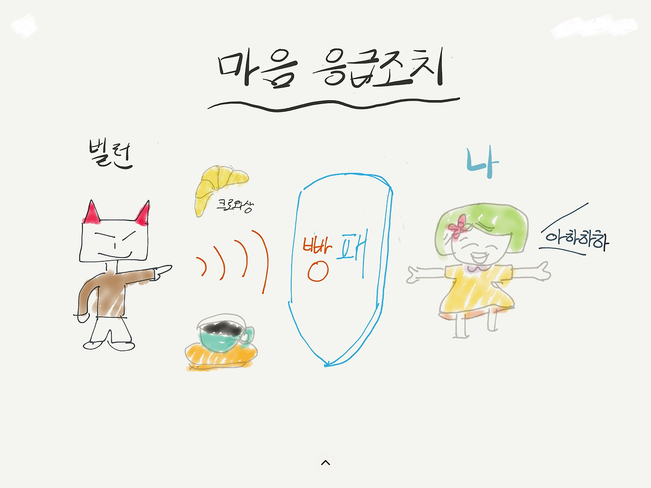1단계는 응급조치다. 그 방법은 빵먹기. 달콤한 빵을 먹으면서 잠시 멈춤의 시간을 나에게 주려는 목적이다. 어떤 때는 빵을 먹는 것만으로도 화가 풀릴 때도 있다.