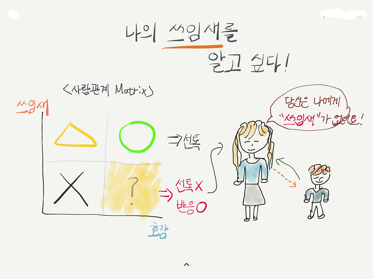 내가 정리한 '사람 관계 Matrix'에 따르면, '쓰임새'가 없는 사람에게는 먼저 선톡을 하지 않는 것 같다. 즉, 상대방이 제안하면, 상황이 되면 받아들이고 아니면 '다음에요.'라는 스킬을 사용한다. 물론 '호감'을 갖고 있으니까 이 정도라도 받아주는 것이긴 하지만...