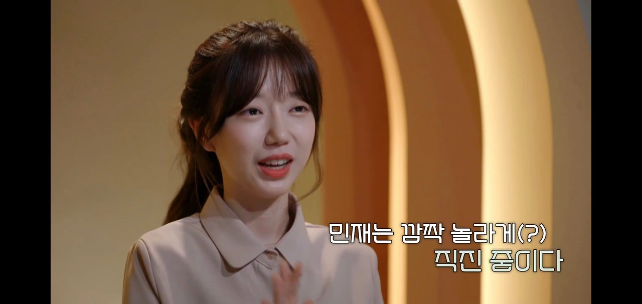 "민재 오빠는 재밌어요. 분위기 메이커이고, 유머가 많아서 편안해요."
