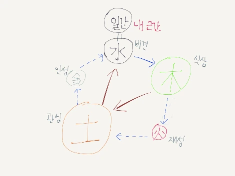 3) 십신의 '재성'은 없고 '관성'만 많으니 조직생활이 적성?