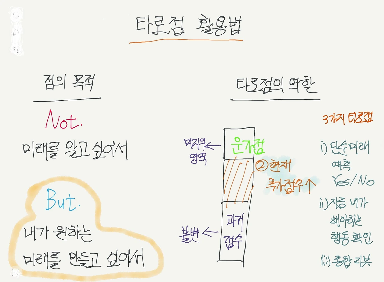 [3줄 요약] ㅇ 미래를 알기 위해 점을 본다? No. ㅇ 내가 원하는 미래를 만들이 위해 점을 본다. ㅇ 그래서, 나는 상황에 따라 3가지 타로점을 보고, 내 행동을 수정한다.