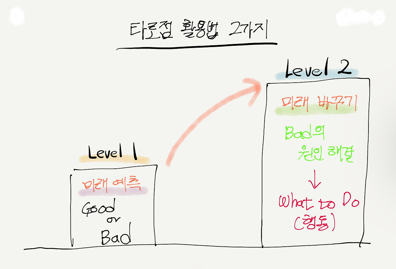여기에서 중요한 것이 뭐냐하면, '당신이 타로점을 보려는 이유'가 무엇이냐야. 그냥 미래가 궁금하다면, 이 방법으로두 충분해. 그런데, 한 발 더 나가서 '내가 원하는 미래'를 만들겠다고 하면, 추가로 타로 공부를 꼭 해줘.