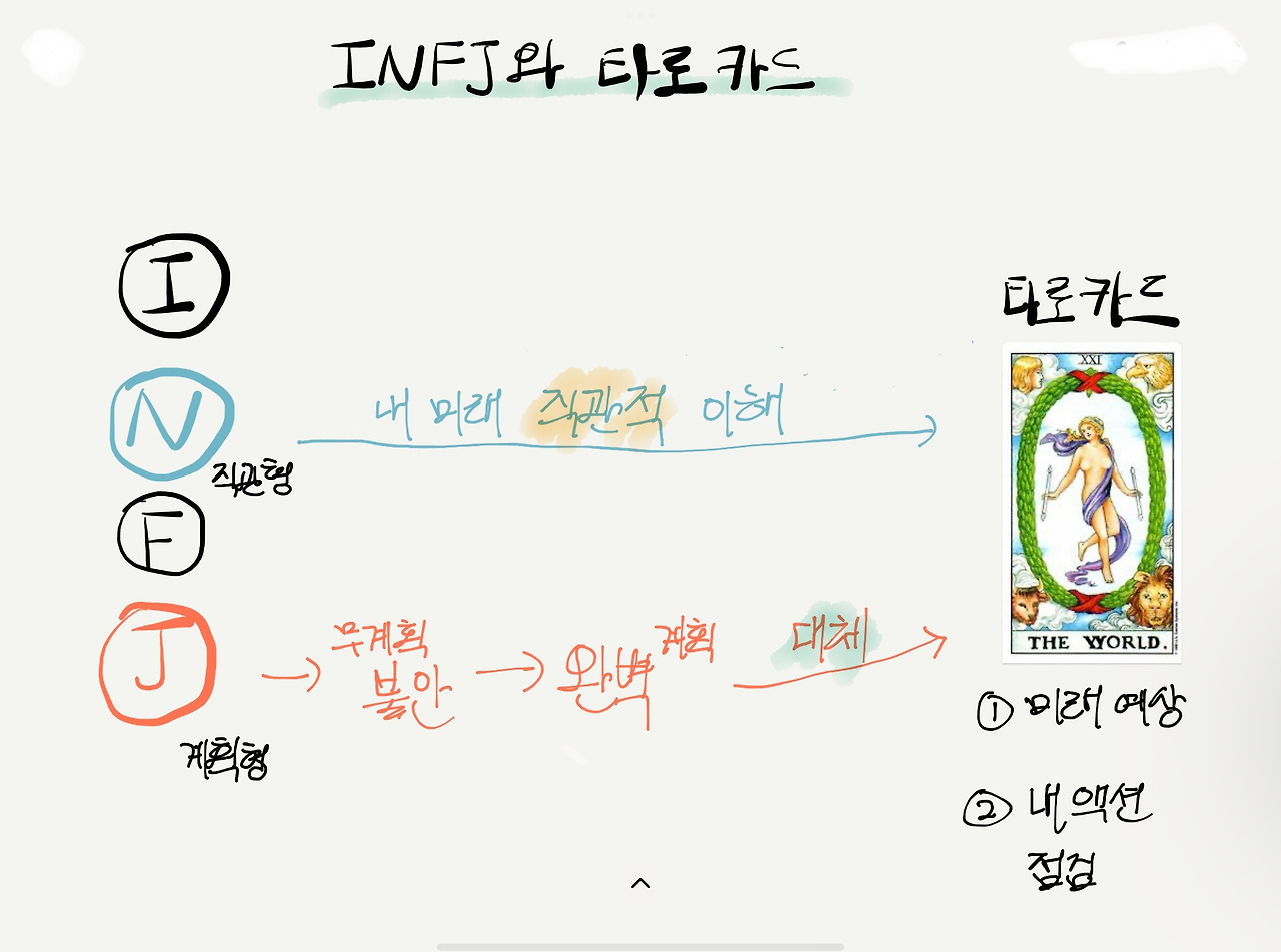 ㅇ MBTI로 말하면, N유형이 타로점과 잘 어울려보여. 그리고, J 유형도 좋아보여.