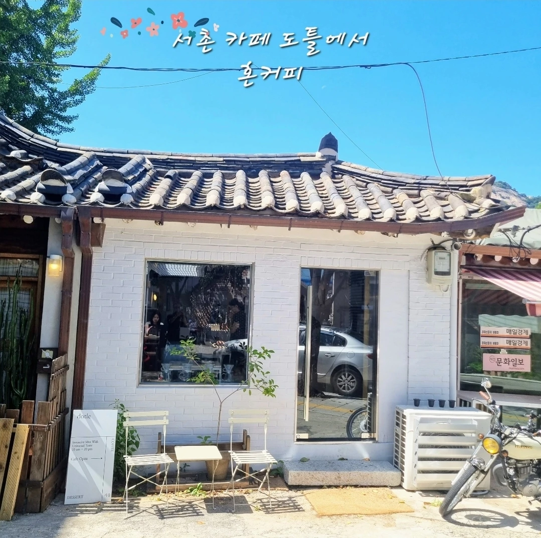- 목에는 명찰 목걸이와 손에 든 테이크 아웃 커피.