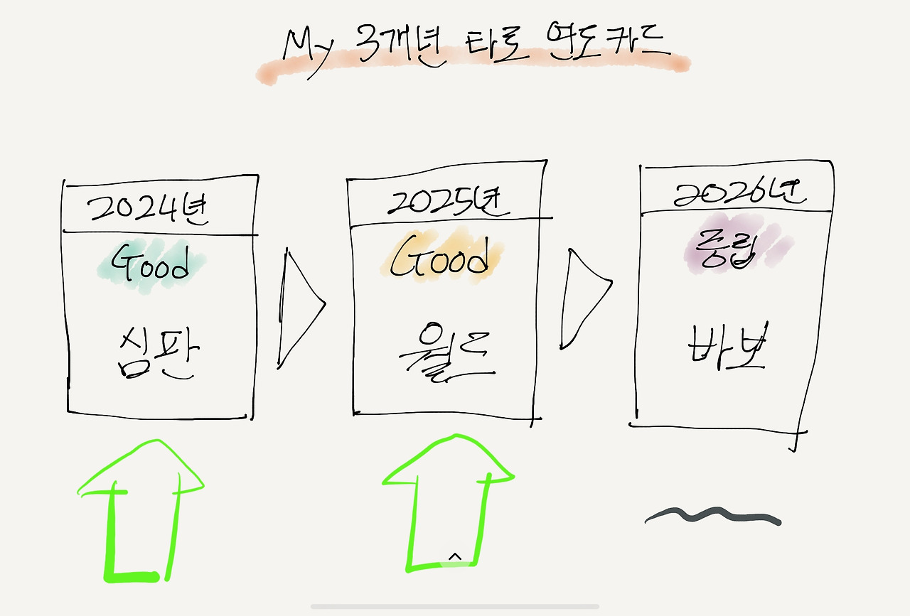 즉, 연도카드는 점술이라기보다는 우리 인생의 내비게이션 같은 존재입니다. 다만 목적지를 정해주는 게 아니라, "이쪽 길로 가면 뭘 배울 수 있을 거예요~"라고 힌트를 주는 거죠.