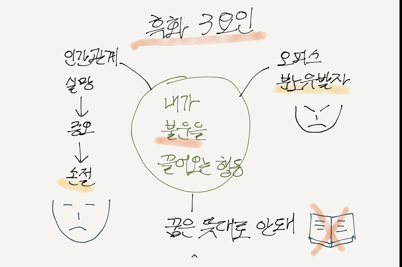 그럼에도 불구하고 현실이 Bad인 이유는 '내가 불운을 부르는 행동'을 하고 있기 때문이라고 생각했다. 인간 관계에 대한 실망과 증오, 오피스 분노유발자들로 인한 흑화 등 말이다.