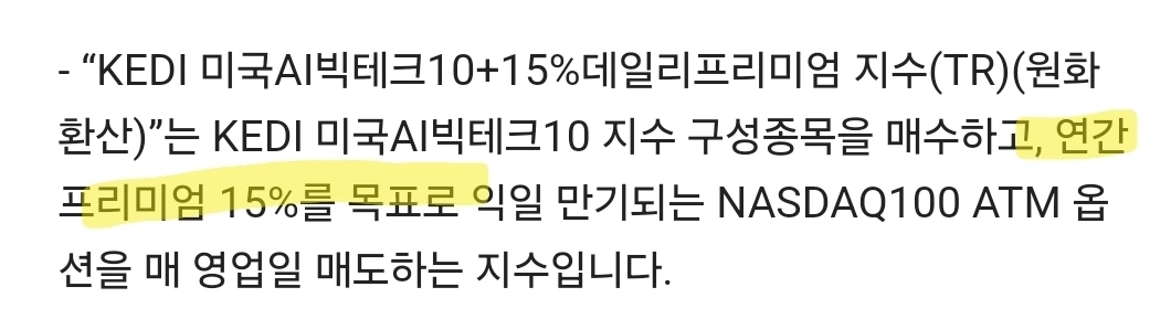 둘째, 매월 지급하는 분배금. 이 ETF는 연 15% 수준의 수익을 분배해주는 게 목표야. 그 수익은 어디서 나오냐고? 바로 선물 옵션 거래에서 나와.