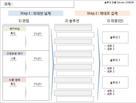 잊지 않고 있죠? 넓고 깊게.. 그것을 위해 '벤치마킹', '고정관념 깨기', '다른 영역에서 따오기'를 해봅시다.