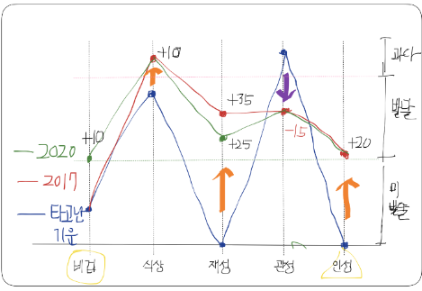 내 결론은 '변화'의 시기가 맞다고 판단했습니다. 그 판단 논리는 내 타고난 사주(운명의 '명'에 해당하는 부분)와 환경(운명의 '운'에 해당하는 부분)의 만나서 내 사주구성 변화가 심하기 때문입니다. 그 판단 근거는 이러합니다.