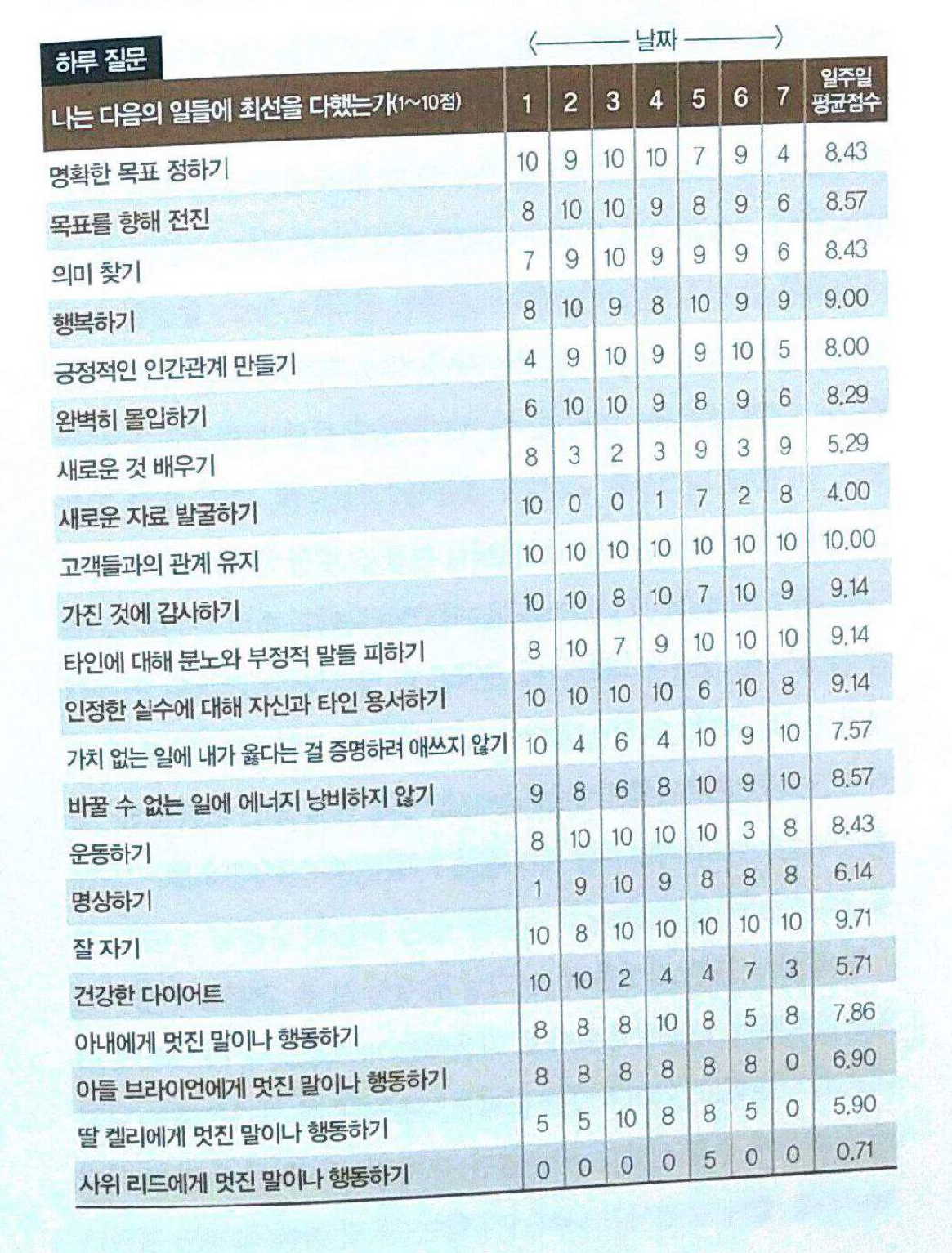 3) 21일 동안 매일 그 질문에 따라 나를 평가한다.