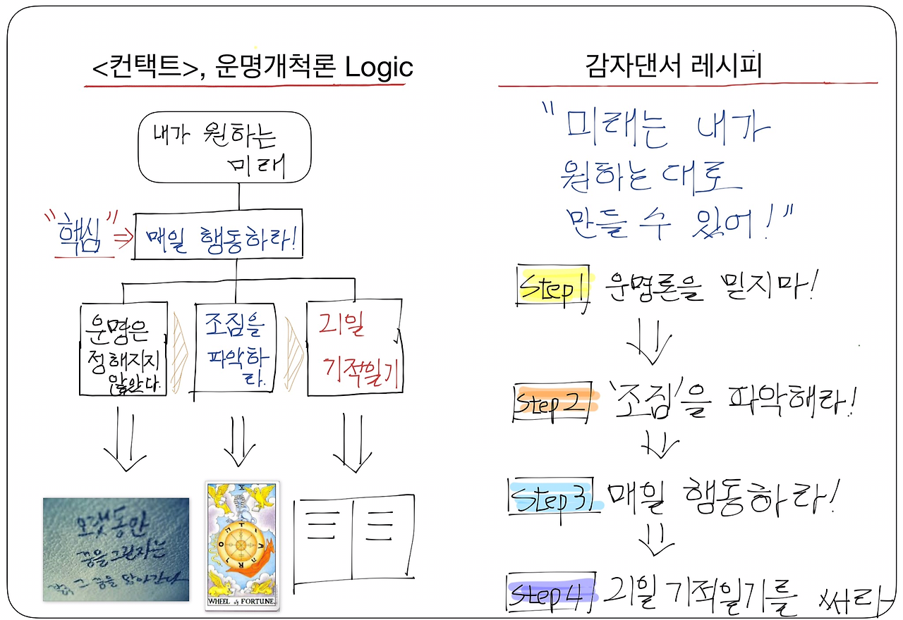 나는 운명이란 '확률(흐름)'이라고 생각해요. 100% 정해진 것이 아니지요. 앞에서 신점 본 얘기 했죠? 신점에서 '올해 운이 좋다.'는 확률(흐름)이 높다라는 의미예요. 내가 그 확률(흐름)만 믿고 아무 것도 하지 않으면, 실제로 그 일은 일어나지 않죠.