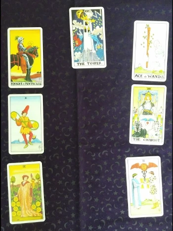 나는 이제 그에게 7장의 타로 카드를 뽑으라고 말했습니다. 그가 카드를 뽑으려는 순간, 나는 '잠깐'이라고 그를 멈췄습니다. 왜냐고요? 그가 자기 고민을 깊게 생각하지 않고 카드를 뽑으려 하는 것 같아서 멈추게 했습니다. 그의 고민을 3번 되뇌인 다음에 다시 카드를 뽑으라고 했습니다.