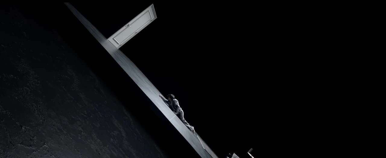 문 뒤에 있을 현재의 그를 향해 소리를 지르고 문을 두드립니다. 문고리를 세게 잡아당겨 보지만 문은 꿈쩍하지 않습니다. 힘을 찾은 과거의 그는 현재의 그를 만나러 한달음에 올만큼 강합니다. 그러나 현재의 그에겐 문 너머 과거의 자신에게 닿을 힘이 아직 부족합니다. 그러나 포기하지 않고 기어서라도 문 가까이 가려 합니다.