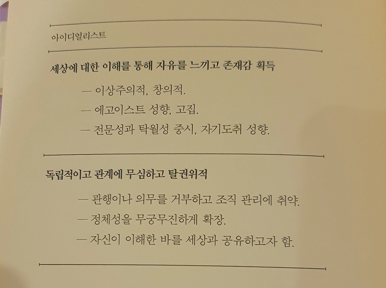 '아이디얼리스트' 성향은 이런 사람이에요.