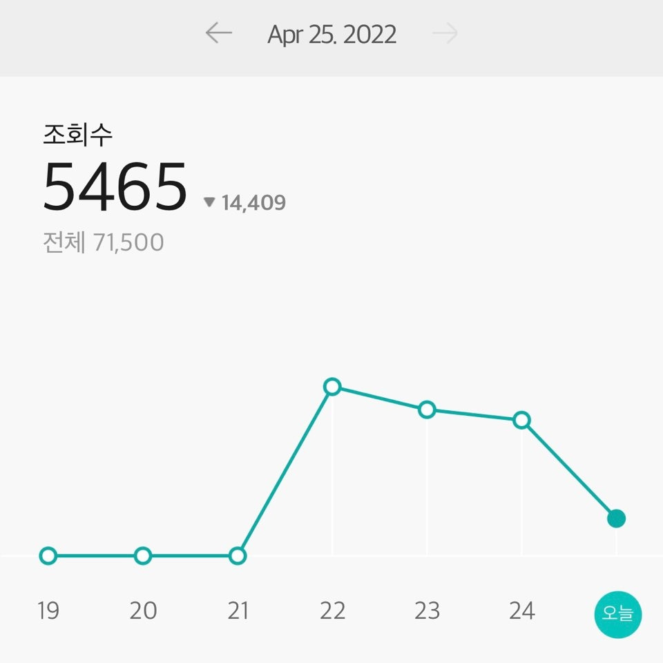 그런데 정말 예상치 못한 일이 일어났다. 내 첫 글이 한 시간 만에 조회수 1,000을 돌파하더니, 작가가 된 첫날 24,000 조회수를 달성한 것이다. 기분이 좋다기보다는 너무나 당황스러웠다. 아무리 읽어봐도 그렇게 심금을 울리는 글은 아닌 것 같은데.. 여기저기 검색해 보니 다음 메인 같은 곳에 소개가 되면 조회수가 몇만 씩 나오기도 한단다. 그래서 다음을 여기저기 찾아봐도, 내 글은 보이지 않았다. 내 조회수에 대한 의문이 풀리지 않자, 평소 상상력이 너무나 풍부한 나는 원래 첫 글은 브런치 팀에서 조회수를 좀 책임져주시나.. 하는 생각까지 들었는데, 그런 이야기는 어디서도 찾아볼 수 없었다. 하루가 지나고 이틀이 지나, 오늘 아침 확인한 조회수는 71,500이다.