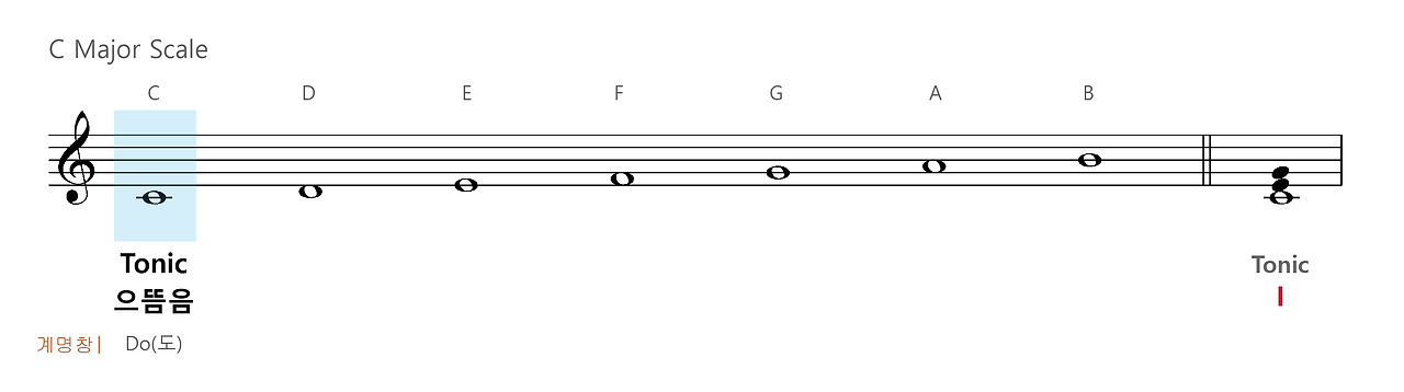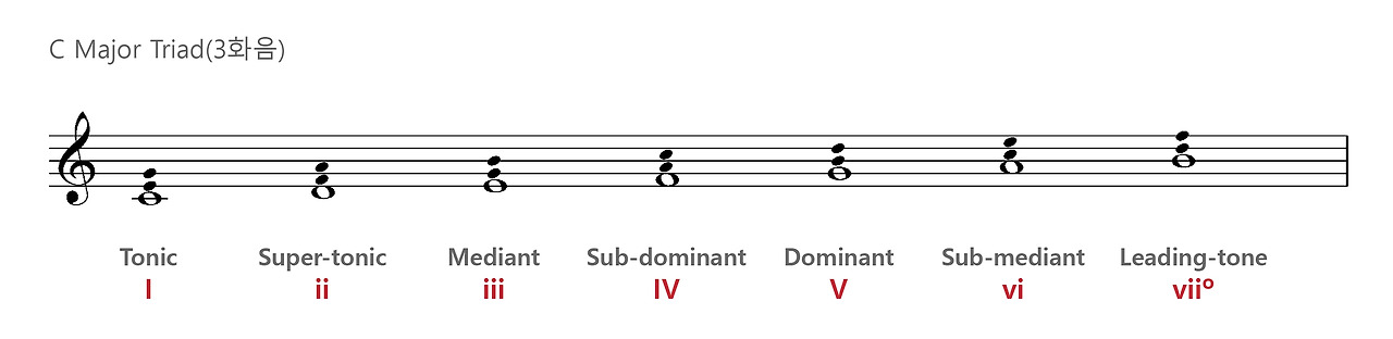조성을 정립하는 각 음들의 기능을 자세히 알아보고자 하는데, 다음의 음의 기능은 화성 어법에서도 그대로 적용된다. 해당음을 근음(Root)으로 하여 만들어진 3화음은 그 근음의 역할을 그대로 받아 수행하며 화성적으로 좀 더 심화된 역할도 간단히 소개해보겠다.
