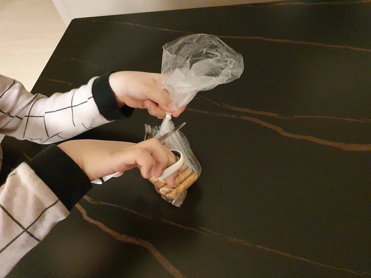 그런데 식탁에 과자봉지를 올려놓은 아이는 1초도 고민하지 않고 책상 서랍을 뒤지기 시작했습니다.
