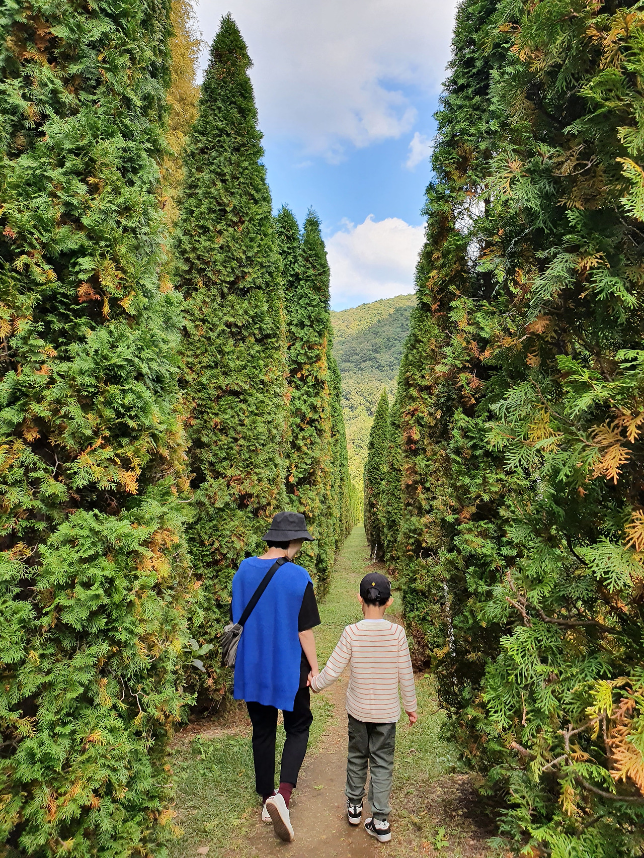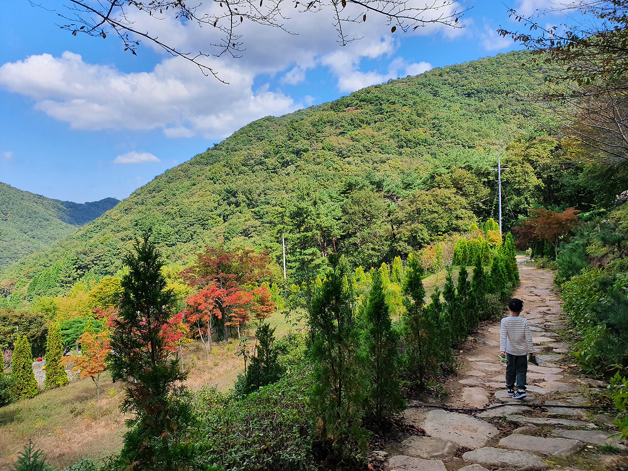 키가 큰 나무들 위로 끝없이 펼쳐진 파란 가을 하늘이 보이시나요? 초록과 파랑은 참 안 어울릴 것 같은 색인데 자연의 모습에선 어쩜 이리 위화감이 없는지. 자연의 모습에선 어떤 색도 버릴 것이 없어서 꽉 차게 감상을 하고, 또 했습니다.