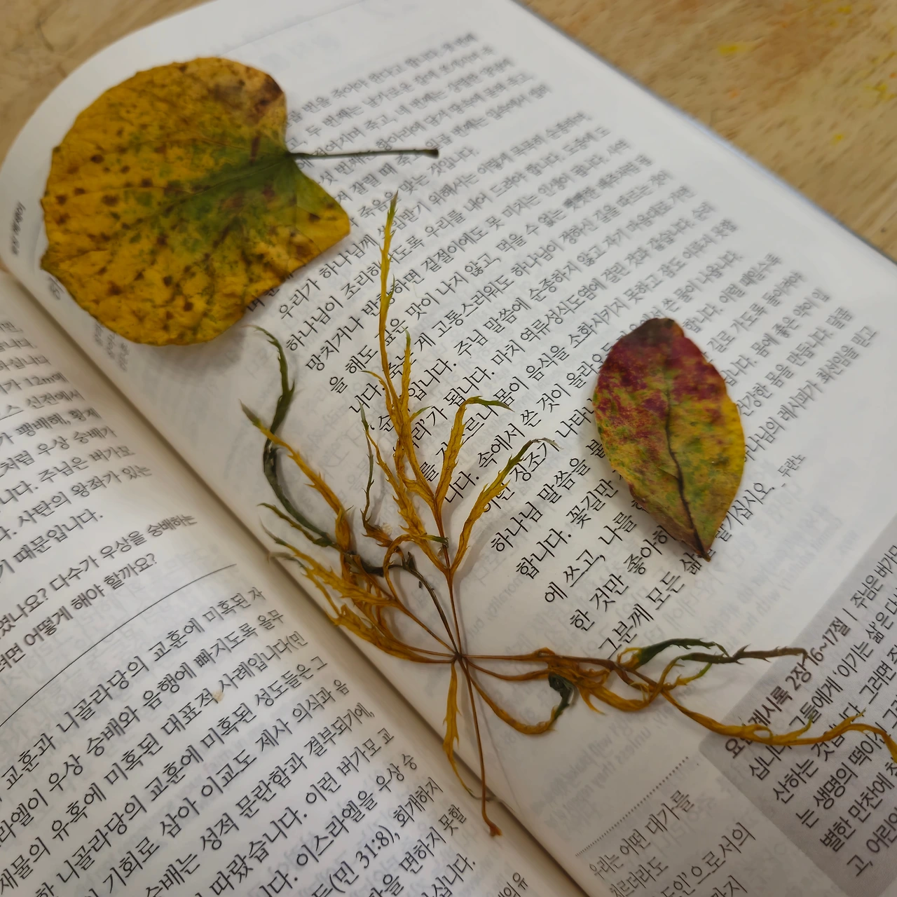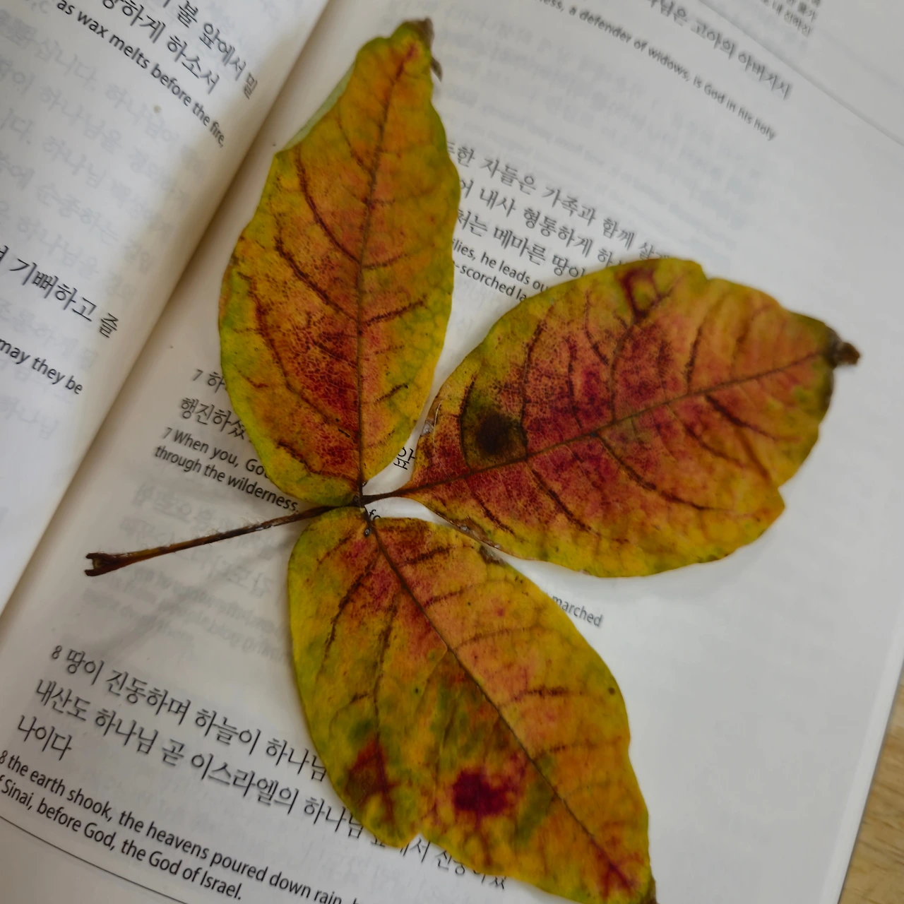 우리 집 첫 째딸에게 이쁜 나뭇잎 보여주시겠다며 주워오신 잎들이었다.