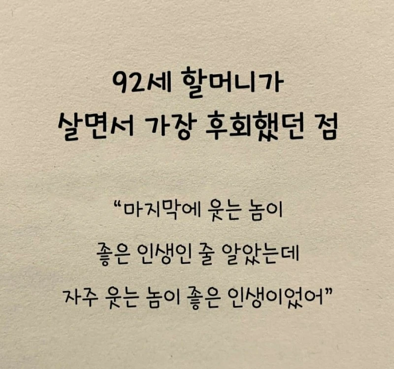 92세 할머니가 살면서 후회한 점