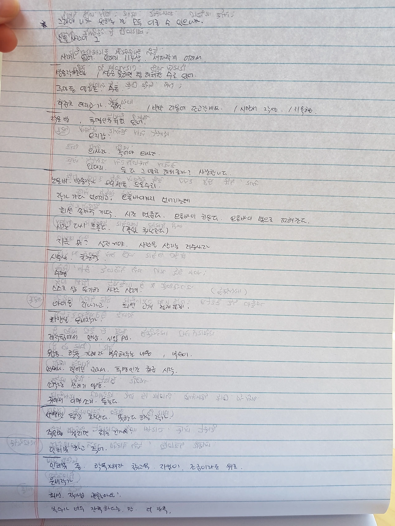보통은 컴퓨터로 깨끗하게 받아적는데