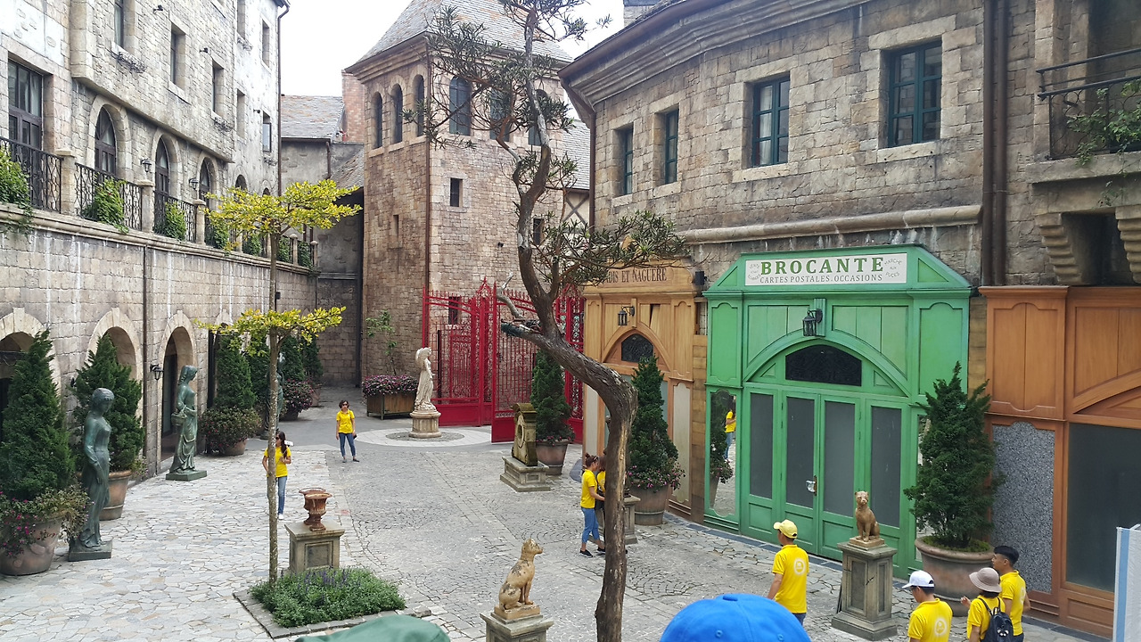 베트남에 가면 바니 힐이란 곳이 있어요. 바로, 여기죠. 정말 풍경 예술이죠? 고소공포증이 있는 저는 덜덜 떨면서 올라갔지만, 위로 올라가면 배경에 걸린 성이 보여요. 이 성 안으로 들어가면, 작은 유럽 마을이 펼쳐지고요.