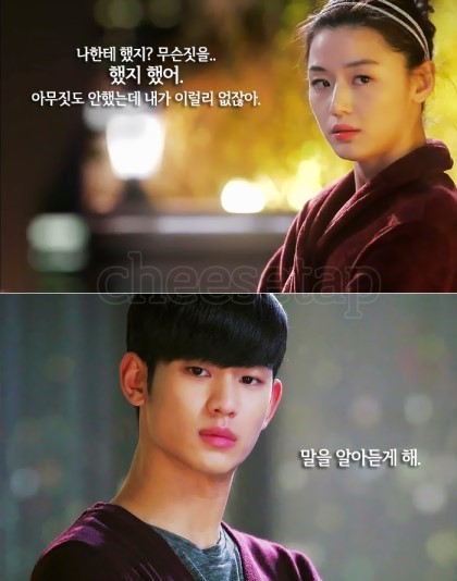 처음에 천송이가 도민준을 15초 동안 꼬시려다