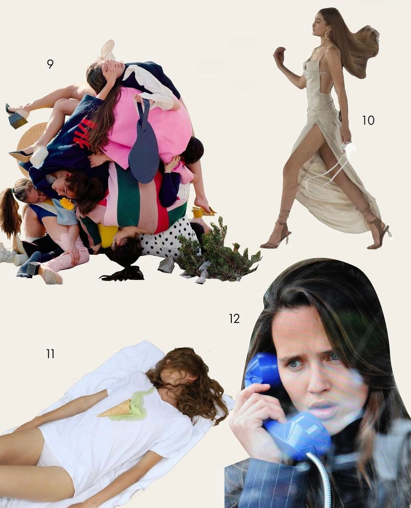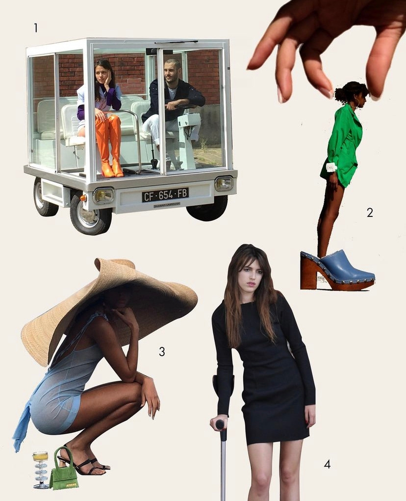 쇼를 통해 맨발과 마스크를 쓴 소녀들을 보여주었는데, 학교에서 마스크를 만드는 수업 역시 영감이 되었다. 패치워크로 보여준 콜라주를 모티프로 어린이들의 미술 수업을 떠올리며 일부러 완벽하지 않게 완성했다. 그리고 개인적으로 좋아하는 미셸 공드리(영화 '무드 인디고'의 감독)의 영화 속 인물도 생각했다. 반은 원피스이고, 나머지 반은 재킷으로 구성된 룩인데 내가 무척 좋아하는 룩이다. 또 커다란 손 모티프 역시 공드리에게서 온 것이다. 사실 작업에 이미지 보드 같은 건 없다. 모든 이미지나 생각은 ‘순간순간’에서 오는 거니까.