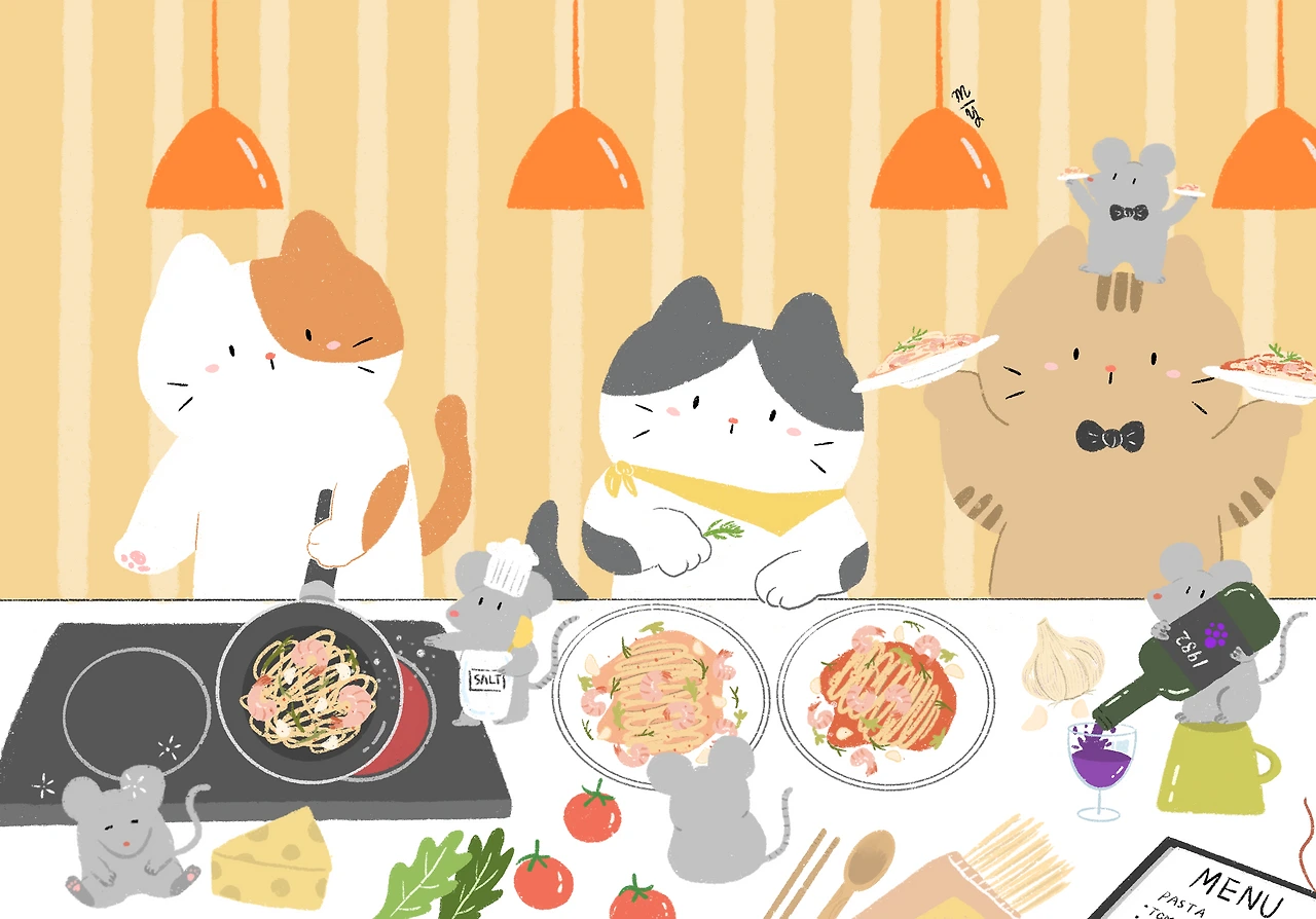 고양이도 파스타 좋아해요.