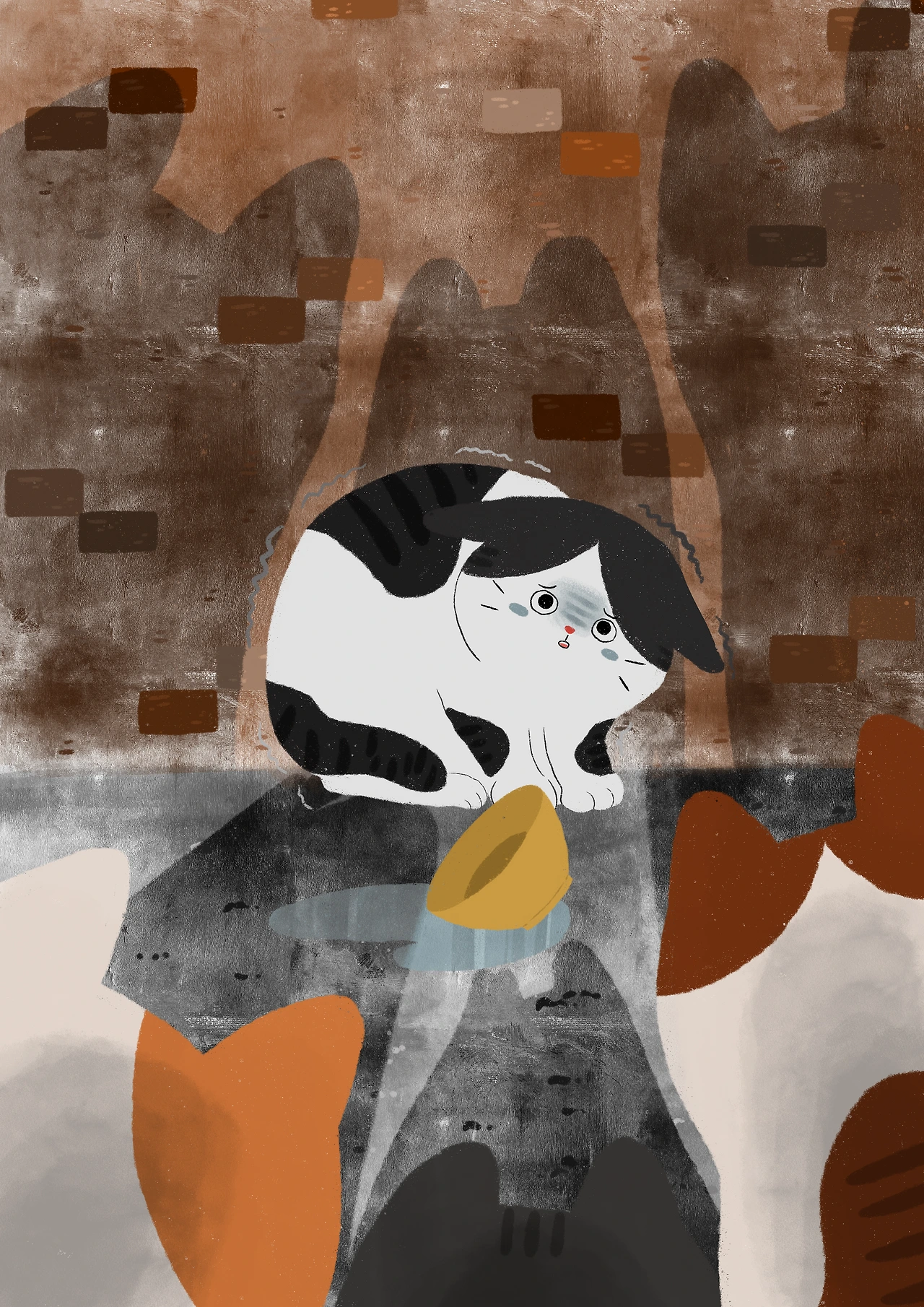 길고양이들의 영역에서 물을 마시다 들켰네요.