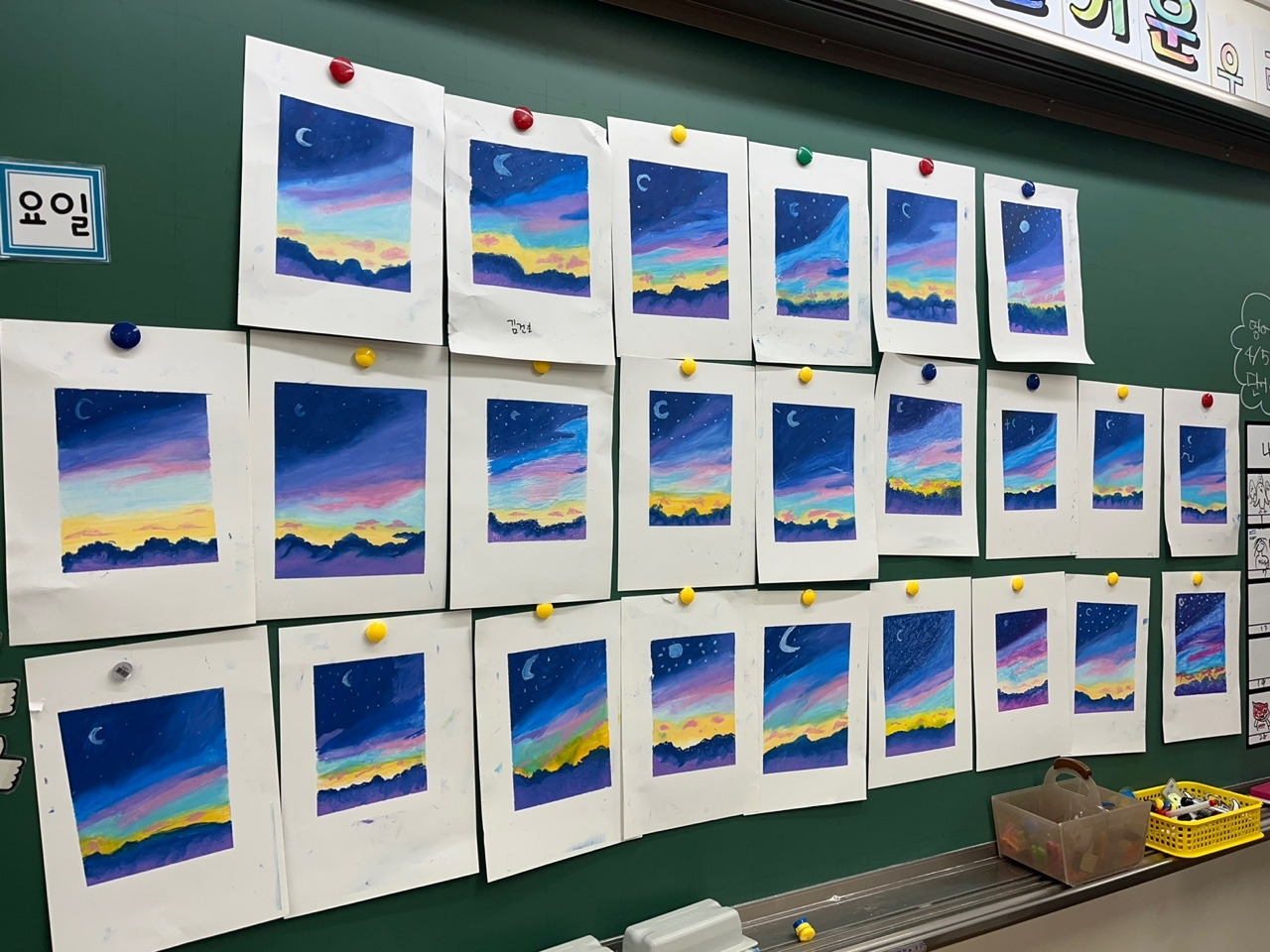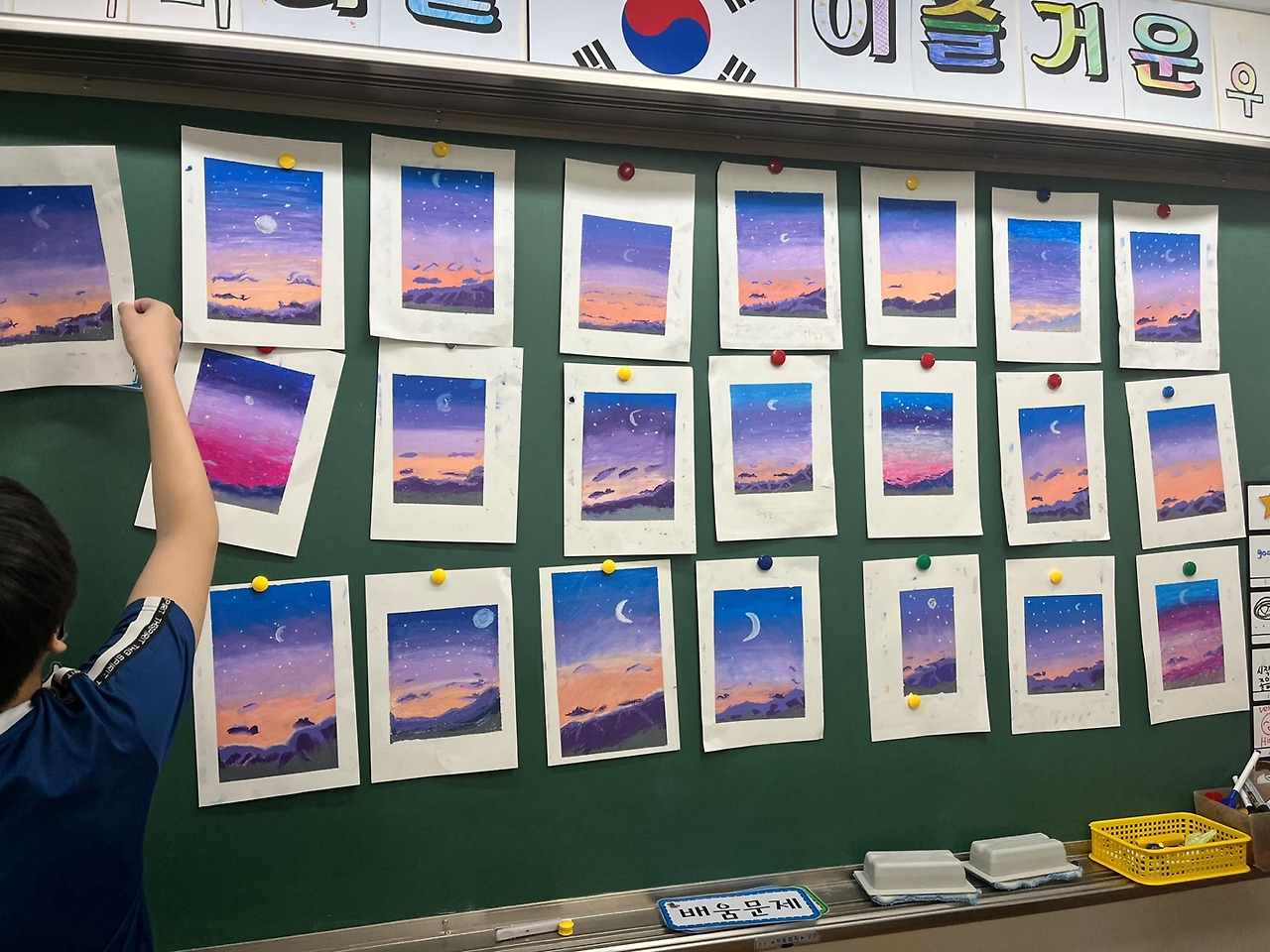 시간이 오래 걸리더라도 끝까지 마무리 하도록 격려했다. 망해도 괜찮은 재료를 선택했다. 오일파스텔이 그 시작이었다. 조금 망쳐도 위에 덧바르면 티가 안나는 재료였기 때문이다. 혹시나 잘못 그리면 어떡하지? 완벽해야 한다는 압박 때문에 그리기를 두려워하는 아이들을 위해 언제든 덧발라서 '실행취소' 할 수 있는 재료를 선택했다. 그리고 손으로 문질러서 다채로운 효과를 낼 수 있기에 미술에 흥미가 없는 아이들도 재미를 느낄 수 있을 것이라 생각했다.
