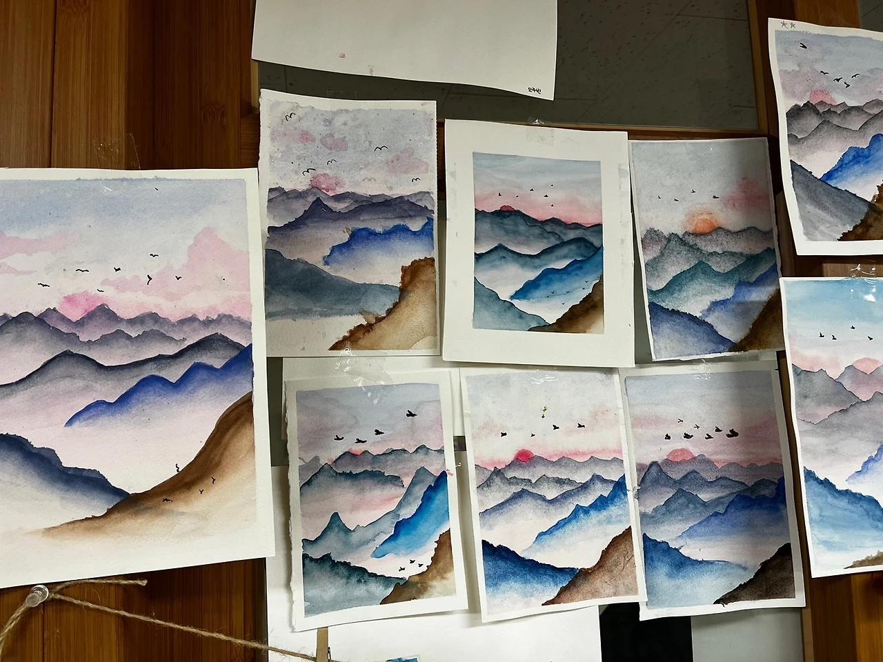 2학기에는 수채화 수업을 시작했다. 한 번 잘못 터치하면 망하기 쉽상인 어려운 재료다. 물 조절부터 색상 선택까지 까다로운 점이 한가득인 녀석이다.