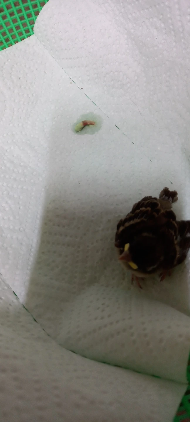 할머니를 졸라 얻어낸 귀한 식량이다. 태어난지 얼마 지나지 않은 참새는 이유식처럼 잘 받아 먹는다. 오물오물.
