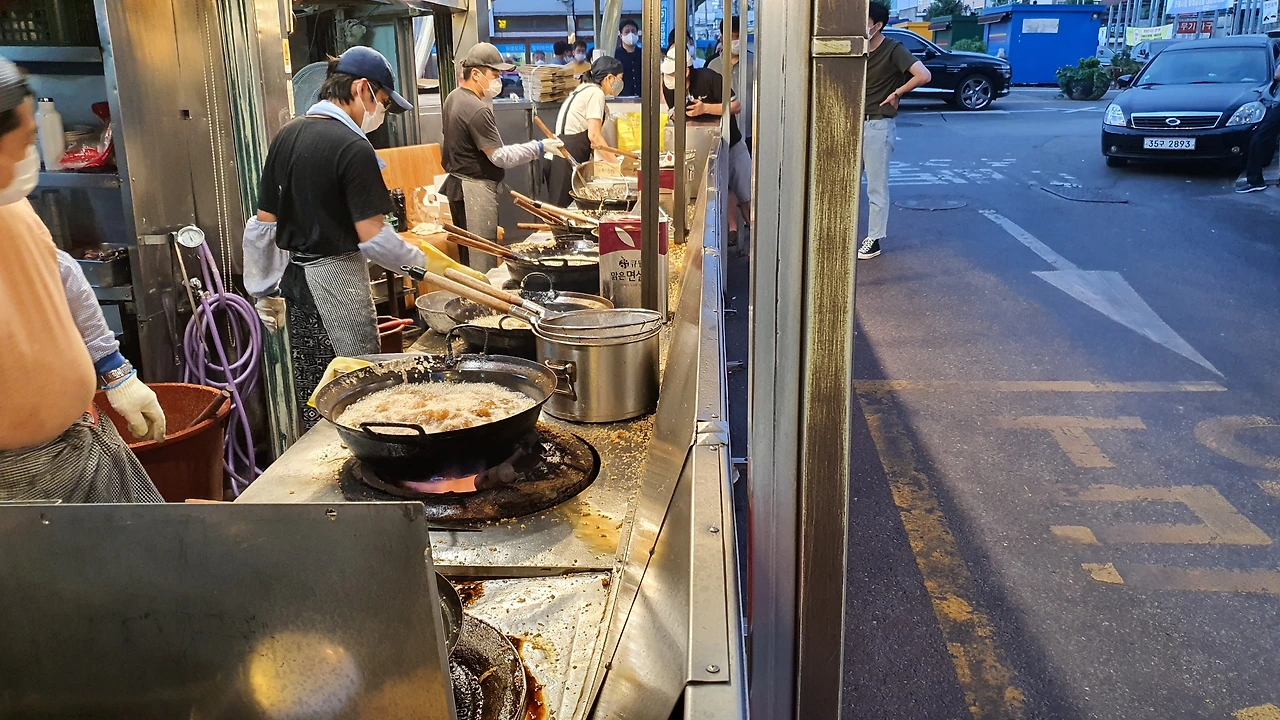 그위에 가마솥에서는 기름이 팔팔 끓고 그속에서 양동통닭이 만들어진다.
